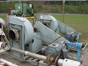 Aerovent Model 500AW-WHB-3617-30 blower having an 11" ID inlet,10" x 10" outlet and approximately a 28" impeller. Impeller is belt driven by a 30 HP DC motor with blower. Type MHB.S/N-85-0058701. Mfg 1985.