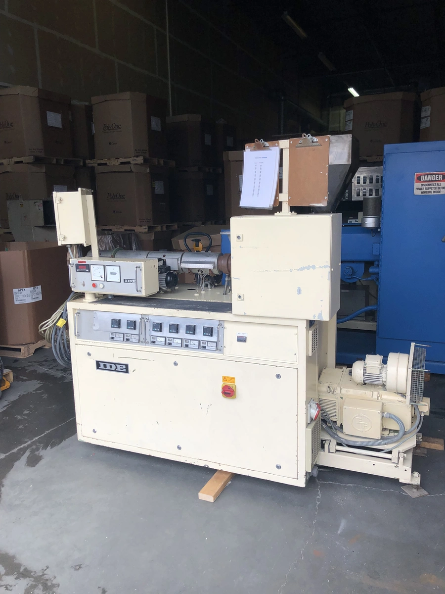 IDE ME45 45mm extruder available, Features 4 heating zones, 2 tool zones, and 4 air-cooled fans. Powered by a 14 kW motor. Operating at 440V. NEW PRICE!