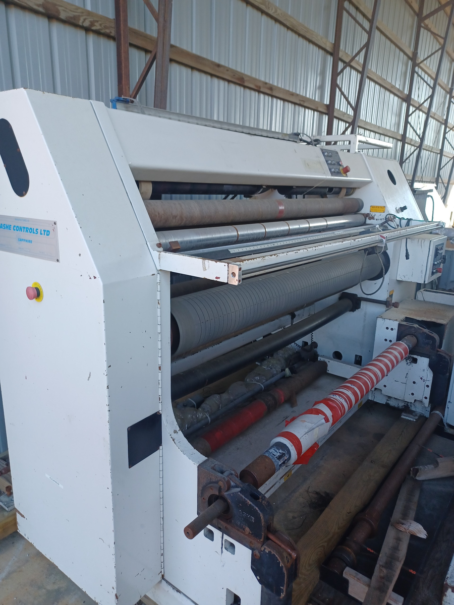64" Ashe Sapphire 680 Slitter Rewinder, used, 1995. Features include shear and razor slitting, 1000 ft/min speed, 64" width, 32" unwind, and 24" rewind capability. serial 135-95.