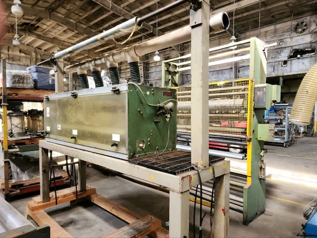 Corotec 60-inch two-sided treater available. Used condition with 60-inch web width capability. Note: Power supply is missing.