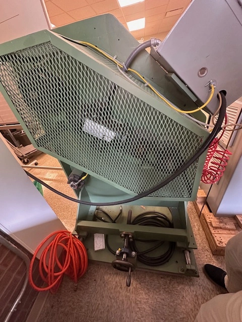 24" Used Parkinson Dual Position Unwind Stand, Maximum unwind diameter as a single unwind is 38”, dual unwind diameter is 32”, Maximum web width of 24”, Air brake unwind tension control, manual edge guide, two 3” diameter unwind shafts. Clean room application. One unwind station modified to a be rewind station. Included will be a 1 HP AC variable speed drive and gear box and new electrical controls. Engineered for 50 FPM line speed. Older unit but almost no use.