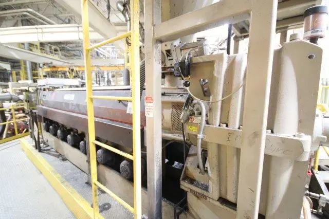 Used 130mm (5.11") 30/1 L/D Non-Vented Davis Standard Extruder. Driven by 250 hp DC motor with 42" centerline air cooled barrel. Includes heat panel (without temperature controller), SCR controller and 611 continuous screen changer. Gearbox is Serial #U7644, SO #58491, rated at 365 hp with 1.5" service factor, 17.49/1 gear ratio. New 7/1997. 42" barrel centerline height.