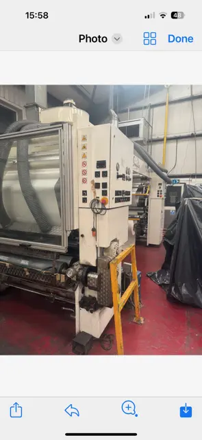 2002 Nordmeccanica 1300 Super Simplex Laminator for sale. This used machine features 1000mm unwind/rewind, F&B corona treater, and includes rollers, trolley, and spare parts. Seller offers container loading for shipment.