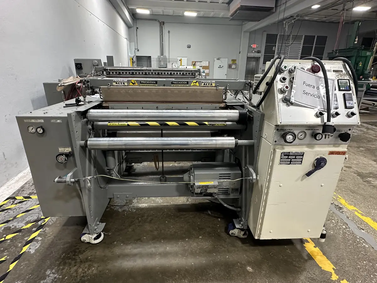 1996 40" Gloucester 418 HE in line bag machine.