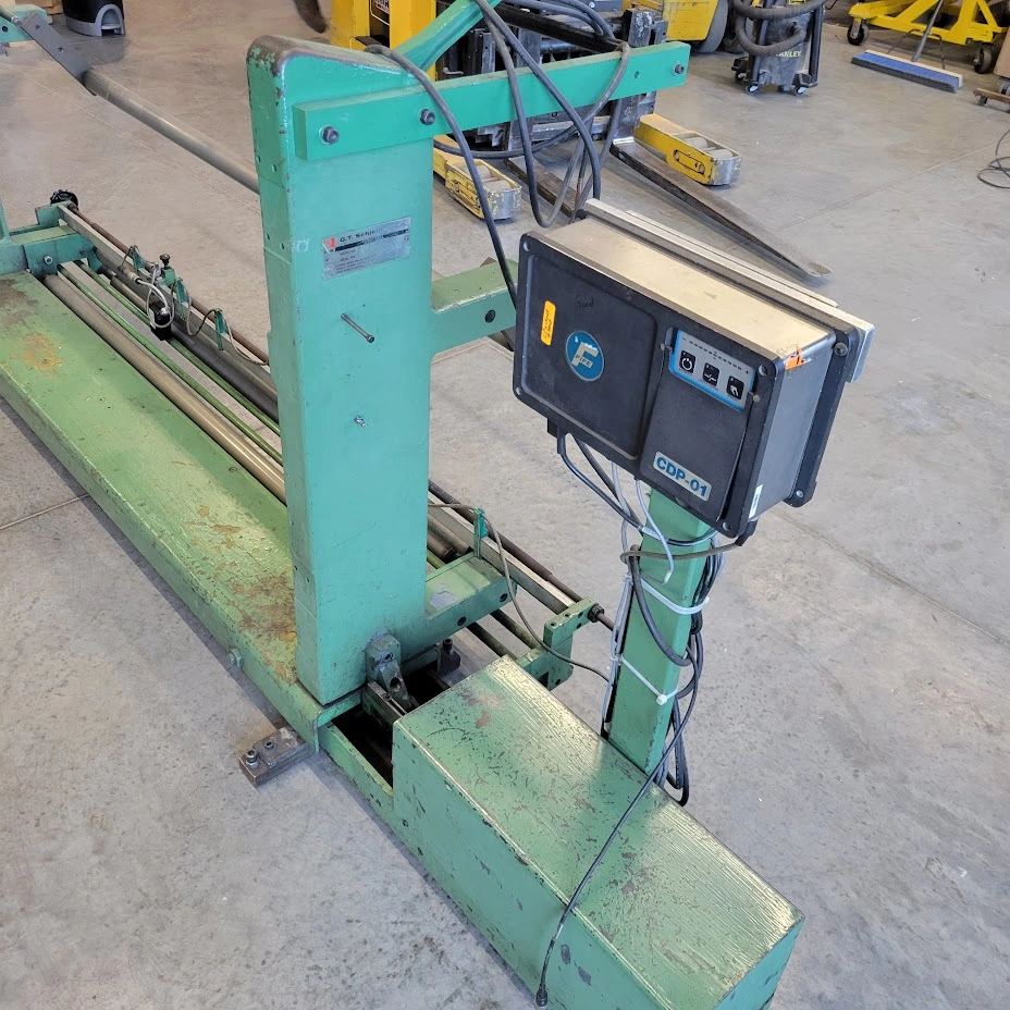 Sheldahl 60" guided unwind stand with Fife edge guide holds two 24" diameter film rolls. Canvas drag brake tension control; shafts not included. Drag brakes are available at www.sideweld.com. Ideal for bag machine setups.