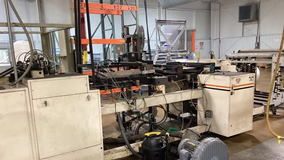 HUDSON SHARP zipper system used bag machine accessory. Includes an ultrasonic system and was installed on an Amplas 30" wicketer, available separately.