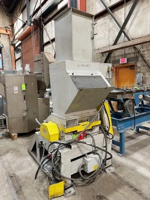 Used 1999 Process Control Granulator Model GTDN50BMXXU features a 15" x 27" setup with a 3-knife open rotor. Powered by a 50 hp motor (starter not included). Discharge blower and cyclone not included.